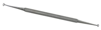 Stainless Steel, two sided. Small loop used for whiteheads; large loop use to extract blackheads